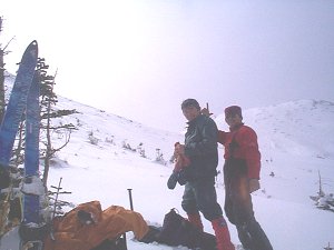 アイゼンからスキーに履き替えて滑りました